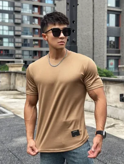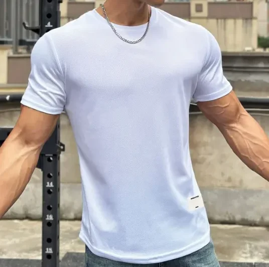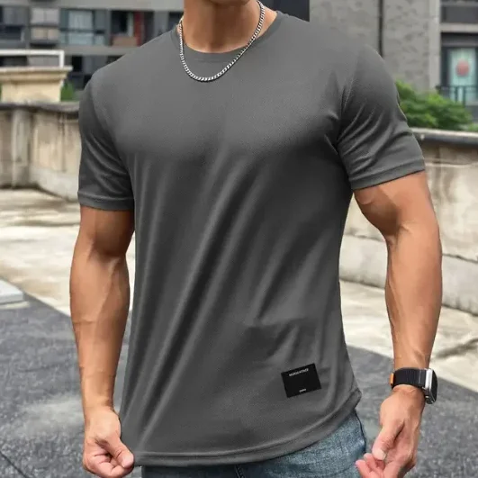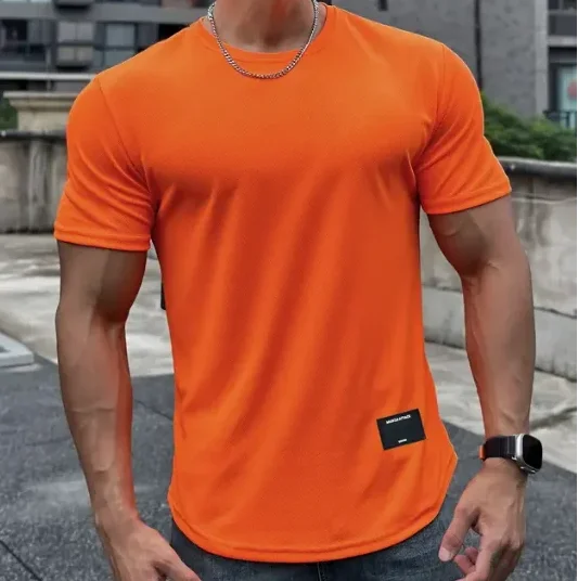 2024 new Men Summer Short Sleeve Fitness T Shirt Running Sport Gym Muscle T Shirt Workout Casual High Quality Tops Clothing