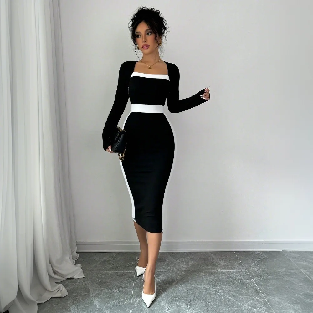 Autumn Winter Sweater Dress for Women 2024 New Arrivals Square Neck High Waist Long Knitted Dress Korean Maxi Dresses