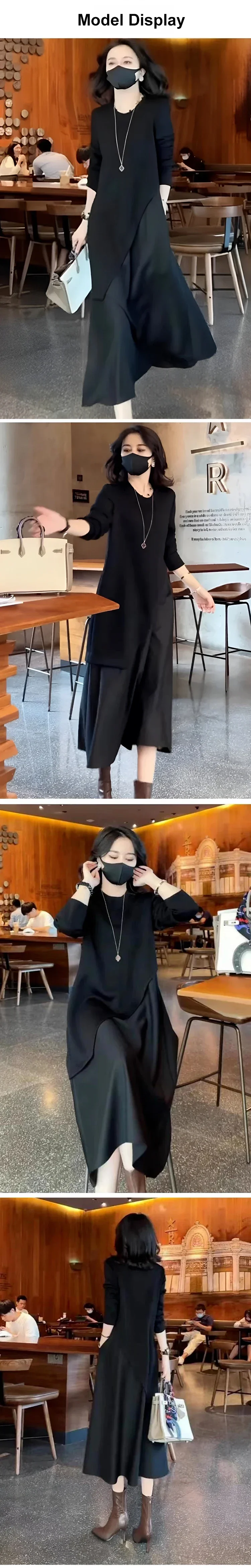 Be the first to review “Fake Two Piece Long Skirt Sleeved Round Neck Pure Black Dress Ladies’ Printed Dresses French Design Sense 2024 NEW” Cancel reply