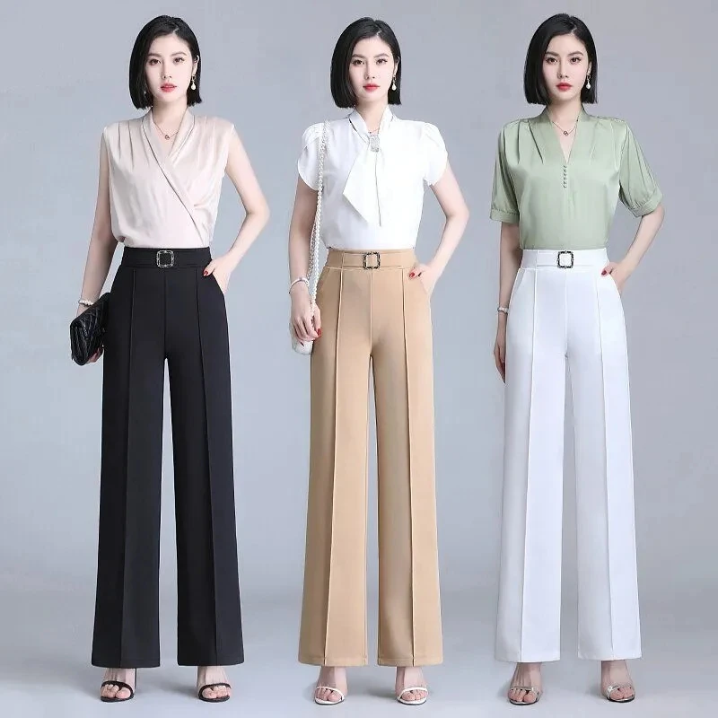 High Waist Wide Leg Pants Women Spring Autumn New Drop Feel Relaxed Straight Suit Pants Fashion Wild Casual Trousers White Black