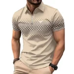 Men Personality Summer Fashion Sport Short Sleeve Casual Lapel Zipper Polo Shirt Men Print Polyester Quick Drying Polo Shirt Top
