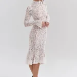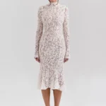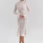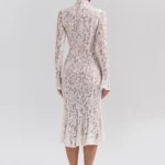 Mozision Lace Long Sleeve Sexy Midi Dress For Women Elegant White Half High Collar High Waist Bodycon Club Party Sexy Long Dress