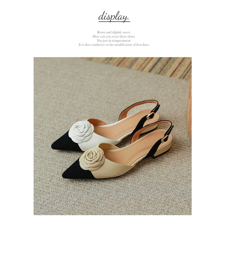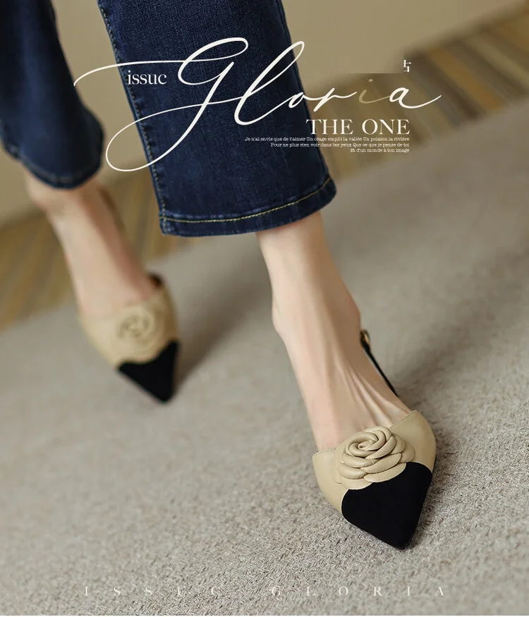 2022 Summer/Spring Women Shoes Split Leather Pointed Toe Women Sandals Mixed Colors Chunky Heel Shoes for Women Soft Low Heels