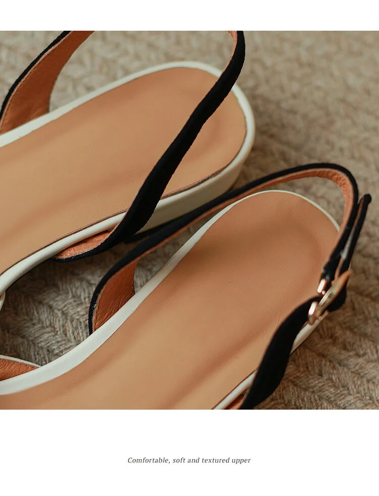 NEW Summer Women Shoes Split Leather Pointed Toe Women Sandals Mixed Colors Chunky Heel Shoes for Women Soft Low Heels Plus Size