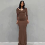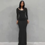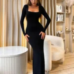 Sexy Bodycon Party Solid Color Long Dress For Women Long Sleeve Bandage Slim Dresses 2023 Autumn New Fashion Vestidos Black Robe