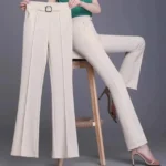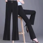 Winter Office Lady’s Elegant Straight Leg Pants New In Women’s Pants Slim Solid Elastic Waist Trousers Fashion All-Match Basic